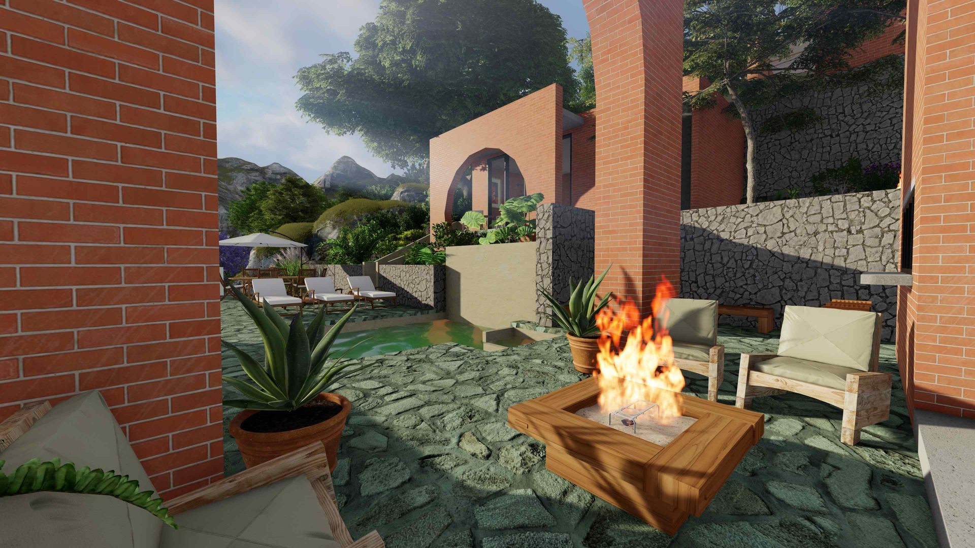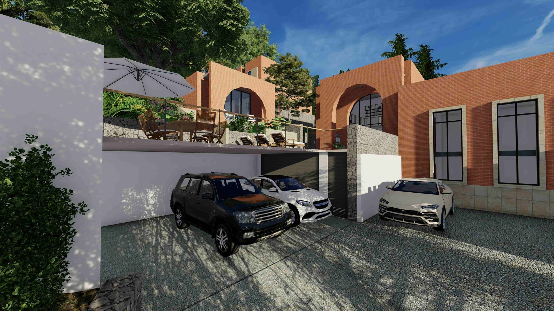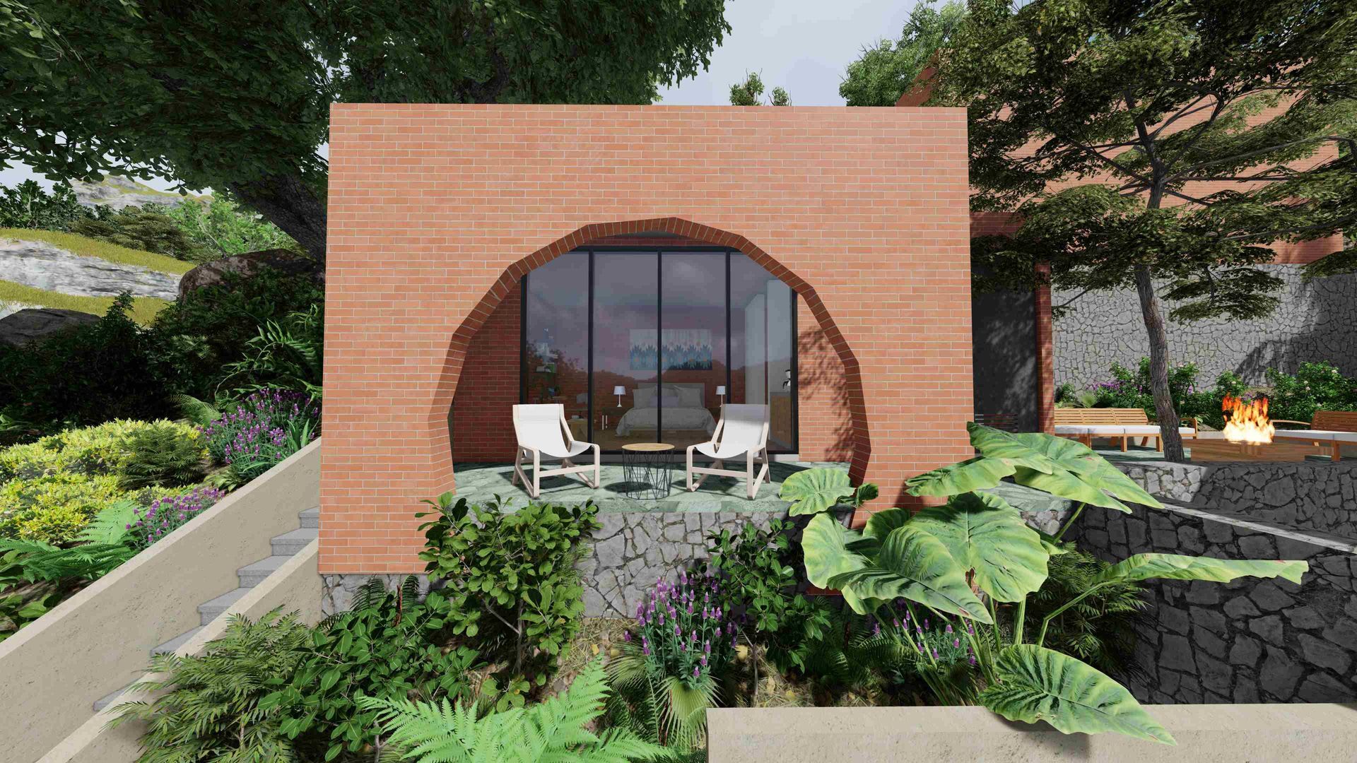 Actualmente está a la venta la Casa 2. Se compone de una casa principal en dos pisos y un Bungalow independiente con su baño completo y cocineta. Los dos volumenes abrazan una explanada principal con su alberca y están rodeados por espacios jardinadas.