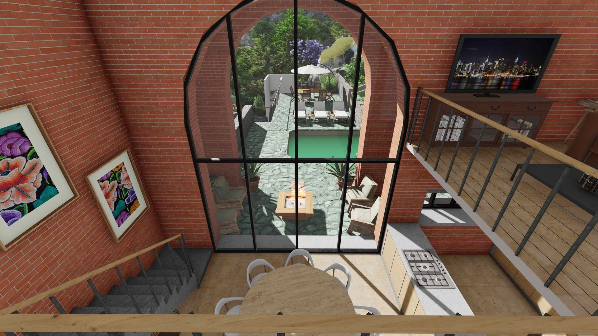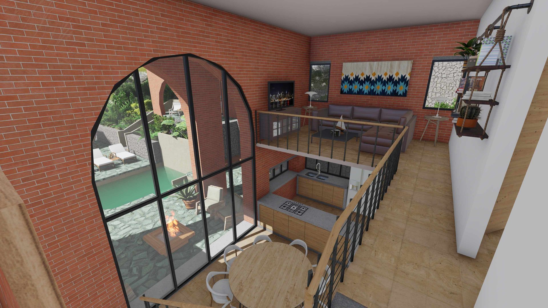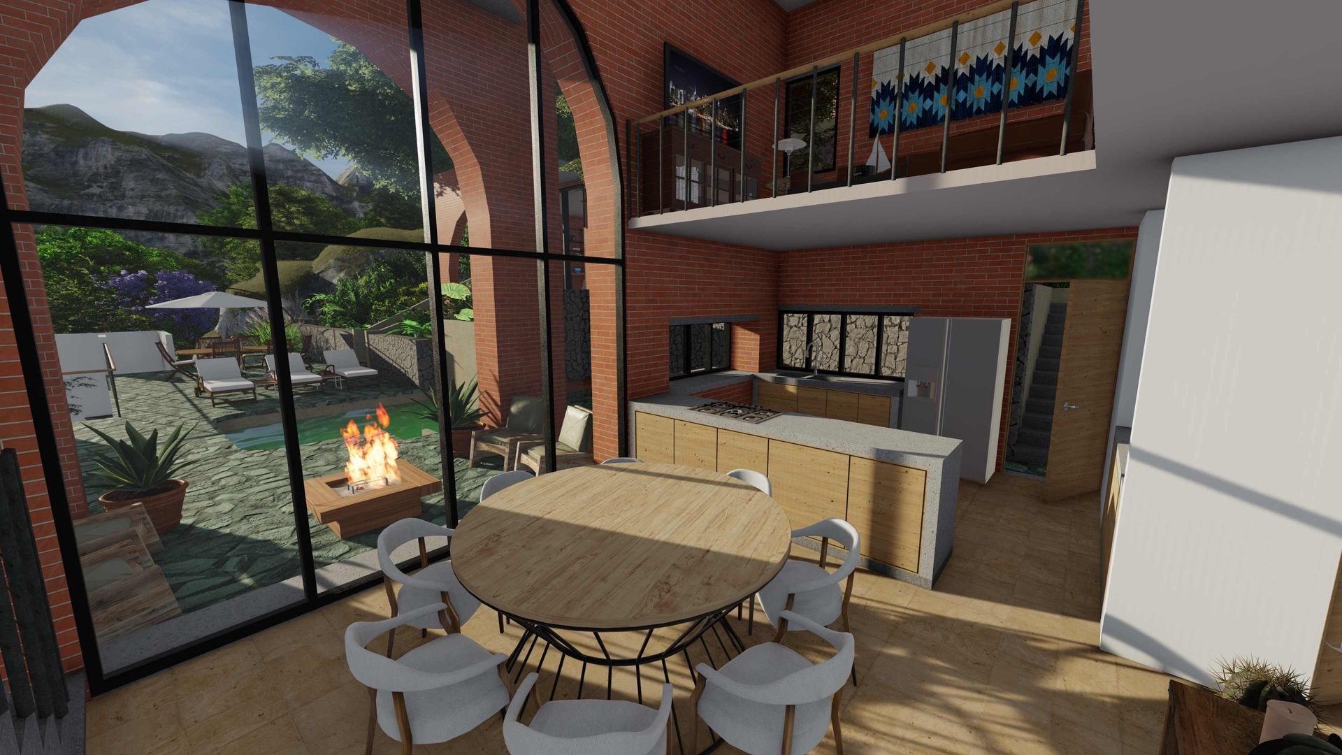 La casa principal cuenta con doble altura, sala, comedor, cocina abierta, área de servicio, dos recámaras con opción a una tercera y sus dos baños completos. La casa cuenta con 3 lugares de estacionamiento techados.
